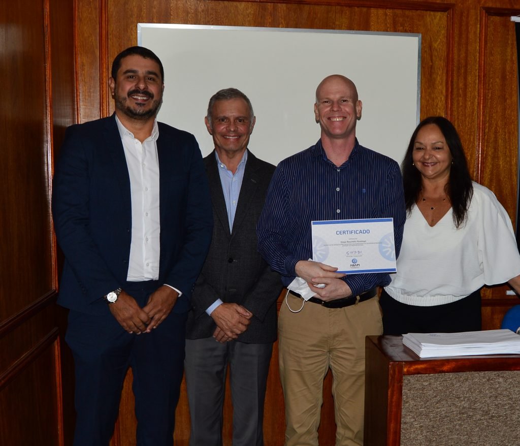 No último dia 25, o Curso Avançado de Patentes da ABAPI deu por encerrada as aulas com um coquetel presencial na sede da ABAPI, o primeiro desde 2020. No evento, os coordenadores Rosane Tavares e Leonardo Cordeiro e o Diretor de Estudos Wilson Jabur entregaram aos alunos os certificados de conclusão do curso, com presença do presidente da Associação, Gabriel Di Blasi.